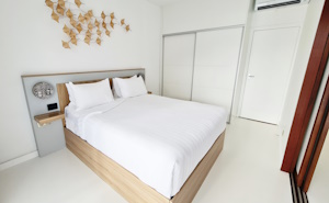 Located on the garden level, these suites have direct access to the pool and the beach. They are equipped with a bedroom with en suite bathroom, a living room with kitchenette and a spacious terrace: