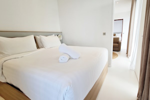 -the 2 bedrooms are each composed of a queen size bed and a large storage space.