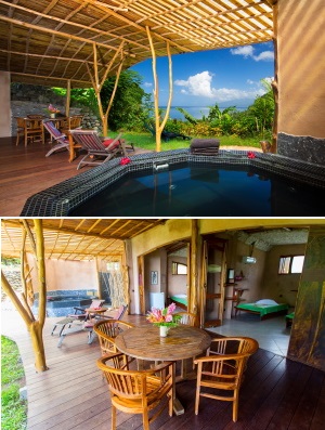Fare Vaihere is a a subtle blend. A Polynesian roof, a deck made of Kohu wood, and tropical-style furniture for a touch of exoticism. The bungalow includes a Jacuzzi for that special feeling of luxury. Not to mention a wide-ranging view over the lagoon and the mountain in order to feel so close to nature. Only the bedrooms are air-conditioned.
