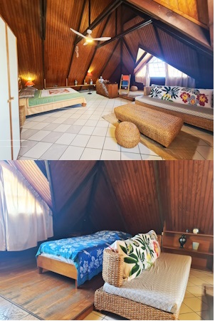 Discover the Triple Heitiare room, spacious and comfortable at 55 square meters, perfectly suited to accommodate a family of up to 3 people. This room includes a queen-size bed and a single bed, guaranteeing everyone a place to rest. You'll appreciate the air conditioning for optimum comfort, as well as a lounge for relaxing in peace and quiet. You'll also enjoy a private bathroom equipped with basic hygiene products, for a pleasant and practical stay.