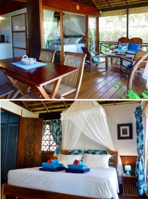The Mahana ("the sun") suite is a typical Polynesian wooden "fare", open on one side to the lagoon and on the other to the tropical garden, which can comfortably accommodate up to 4 people. It is composed of two air-conditioned bedrooms, a bathroom, a separate toilet and a large fully equipped kitchen. All the household linen (sheets, towels and beach towels) is provided.