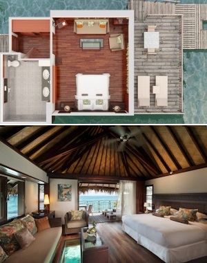These bungalows feature the same configuration and equipment as the Panoramic Overwater units except that they are located at the end of the 3 overwater bungalows branches, enjoying the best views.