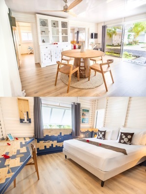 It has two bedrooms, each equipped with a king-size bed and comfortable bedding (renewed in 2023). Ceiling fans, a safe, and a dressing room complete the rooms' amenities.