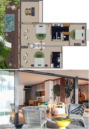 Located in the North-East end of the resort, all Signature categories enjoy a beautiful view on Matavai Bay and the lush vegetation around. They are combining modern facilities with Polynesian touches in the decoration. The suite features one master bedroom with its own shower room, a second room with its own shower room & dressing as well as a large ocean view living room. Also enjoy a private outside area of 42,7 m2 including a large terrace facing Matavai Bay and a plunge pool. This suite will perfectly fit a large family or a party of friends enjoying a long stay in Tahiti in a deluxe independent accommodation.