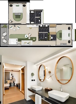 Located in the North-East end of the resort, all Signature categories enjoy a beautiful view on Matavai Bay and the lush vegetation around. They are combining modern facilities with Polynesian touches in the decoration. The suite features one master bedroom with its own shower room, a second room with its own shower room & dressing as well as a large ocean view living room. This comfortable and very spacious suite will perfectly fit a large family or party of friends.