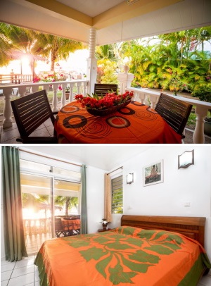 Same configuration as Lanai bungalow, the Beach Bungalow overlooks a small garden and the lagoon.