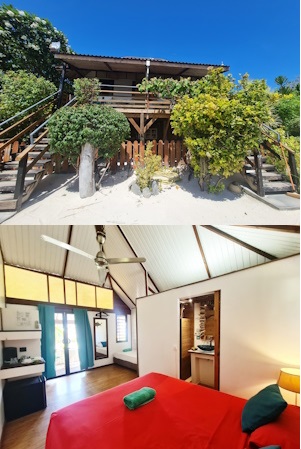 Rising 2 metres from the ground, the 5 Panoramic Garden bungalows are located behind the Beach bungalows and offer a small view of the lagoon from their terrace. Renovated in 2024, they are all air-conditioned, have mini-fridge and a private bathroom with hot water.