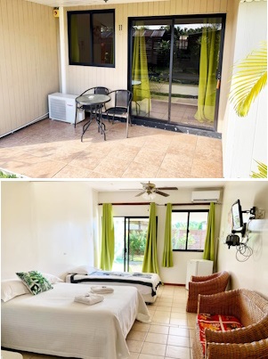 You will have access to a small private outdoor terrace equipped with an armchair and a coffee table. All this in the heart of a tropical garden. A private parking lot is close to the rooms for those who wish to rent a vehicle. The bay window of the entrance is equipped with a lock that offers total security. All rooms have a fully equipped bathroom (shower, sink and toilet) and the water is heated by a solar water heater. You will also find air conditioning and a closet to store your personal belongings. Finally, clean linen will be provided (bath towel, sheets, soap...).