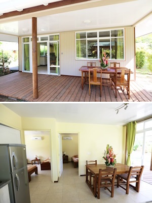 2 units are close to the Reception and 2 others close to the Restaurant. These bungalows are suitable for families, featuring two bedrooms and one kitchenette, configurated as follow: 1 bedroom with a queen size bed another 1 bedroom with 3 single beds , and the kitchenette in the other part, open on the terrace. Furthermore, these bungalows have air conditioning.