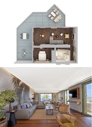 Relax in the ultimate retreat in this suite with island-inspired artwork featuring a spacious living room and a large terrace with ocean view. Other features of the royal suite include : air conditioning, black-out curtains, evening room service available, flexible work environment, hairdryer, Espresso machine, iron, ironing board, minibar. Named after our ancestral Polynesia deities, the Hiro Royal Suite offers a complete outdoor spacious terrace.