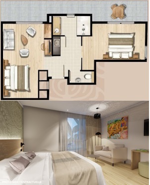 All room categories offer the same in-room amenities, except for the City Room, which does not include a kitchenette.