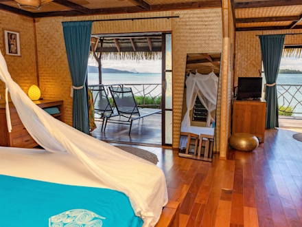 Équipement de plongée, siège et lit bébé disponibles sur demande. Le lagon peu profond environnant est un formidable terrain de jeu pour les enfants de tous âges.