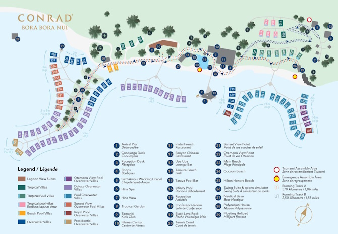 Located on the top of the hill of the resort for a splendid panoramic lagoonview. 8 cabins: 4 individual cabins, 3 double treatment villas with a jacuzzi and 1 an outdoor double treatment area with panoramic views.