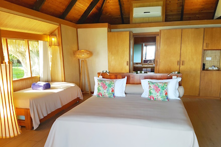 You will love this charming and comfortable property located on the south-west coast of Huahine. The hotel enjoys an ideal location in Avea Bay along a nice white sand beach and in front of a coral garden full of small fishes. This is also the best location to enjoy beautiful sunsets...Service is friendly and smiling Polynesian staff is always elegantly dressed with colourful local dresses. This is the ideal place for families as well as couples on honeymoon, 4 nights or more would be perfect to fully enjoy this beachfront property.