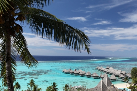 By the Pool, overlooking the infinity pool and the lagoon, with views of Tahiti.
