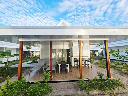 The Niu Beach Hotel is located on one of Moorea's most beautiful beaches, Haapiti: white sand, crystal-clear waters in infinite shades of blue. The hotel features 16 modern, air-conditioned bungalows in a contemporary Polynesian tropical style. The restaurant serves breakfast only. All units have fully equipped kitchens, perfect for independent travelers. Car rental highly recommended to do your shopping.