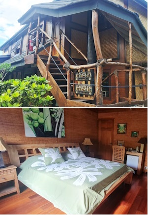 Located on the first floor of the main residence, this room is the most affordable option in the guesthouse. It is accessed via an outside staircase. With a small private balcony offering a partially obstructed view, it offers the same equipment and surface area as the garden bungalows. This room is ideal for couples or busy solo travellers during the day.
