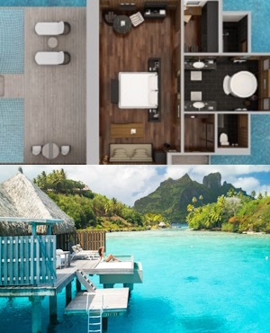Offering complete luxury, the Overwater Otemanu view Overwater Villas is well-appointed to deliver a relaxing getaway in paradise, and provides dazzling views of the iconic Mount Otemanu.