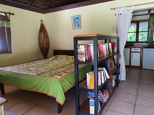 This bungalow is perfect for families. It features a kitchenette, a large living room, a bedroom with a king-size bed, a private bathroom, a small bedroom with a double bed and a living room with a single bed. The terrace is equipped with a hammock, table and chairs for outdoor family meals.