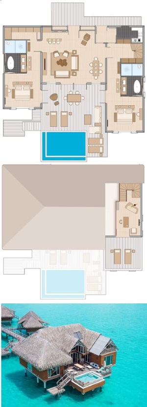 The suite is modern and luxurious and features sleek, contemporary décor with traditional Polynesian design touches, Its cathedral ceilings and its total soundproofing.