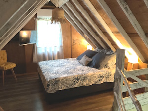 The Moana studio is designed to welcome comfortably a couple with its bedroom in the mezzanine, kitchen corner enjoying the same equipements as other bungalows and nice covered terrace with a garden view. The interior is tastefully decorated in keeping with the sea theme of the bungalow's name "moana". The smart TV completes the list of equipments.