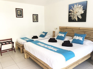 The standard air-conditioned rooms are nicely equipped with bamboo furniture and nice wall decorations giving a welcoming and relaxing universe. They have a view on the garden of the pension.