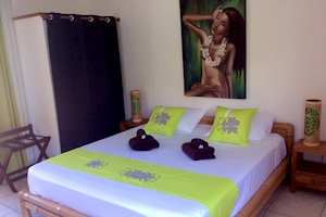 The studios with kitchenette are also nicely equipped with bamboo furniture. They have views of the guesthouse garden. They include a kitchenette for the preparation of meals (hotplates, microwave, coffee maker, basic utensils and cutlery).