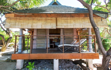 Fresh fruit juice, fresh exotic fruits, hot drink, bread & pastries, butter, jam from Moorea.