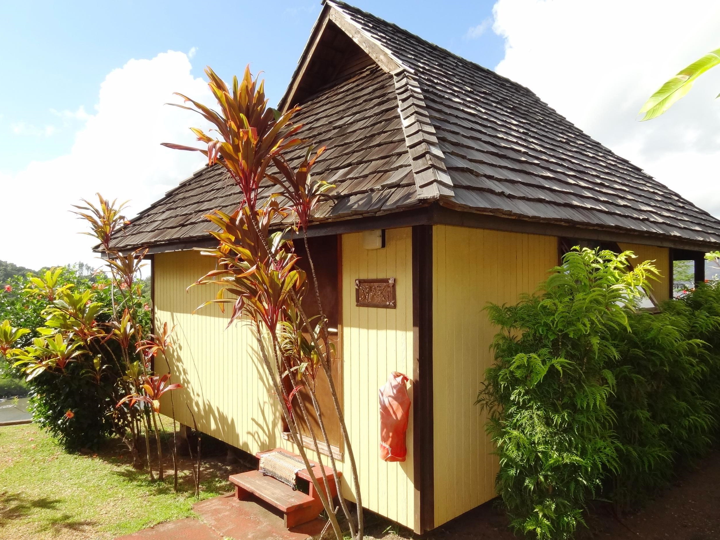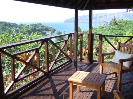 Meals are served on a large common table under a beautiful pergola overlooking the bay of Tahauku.
